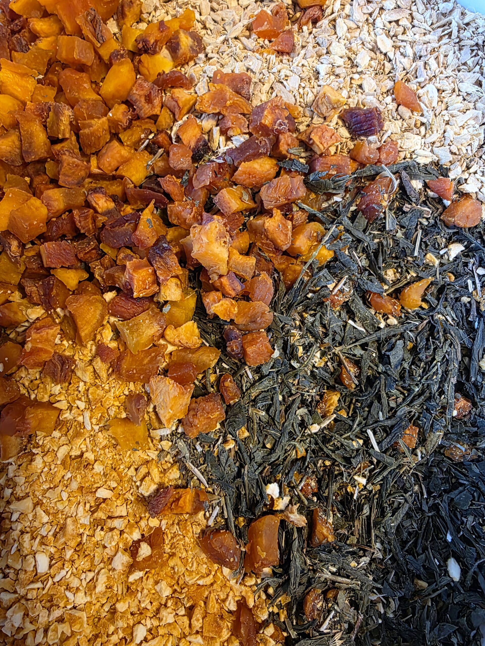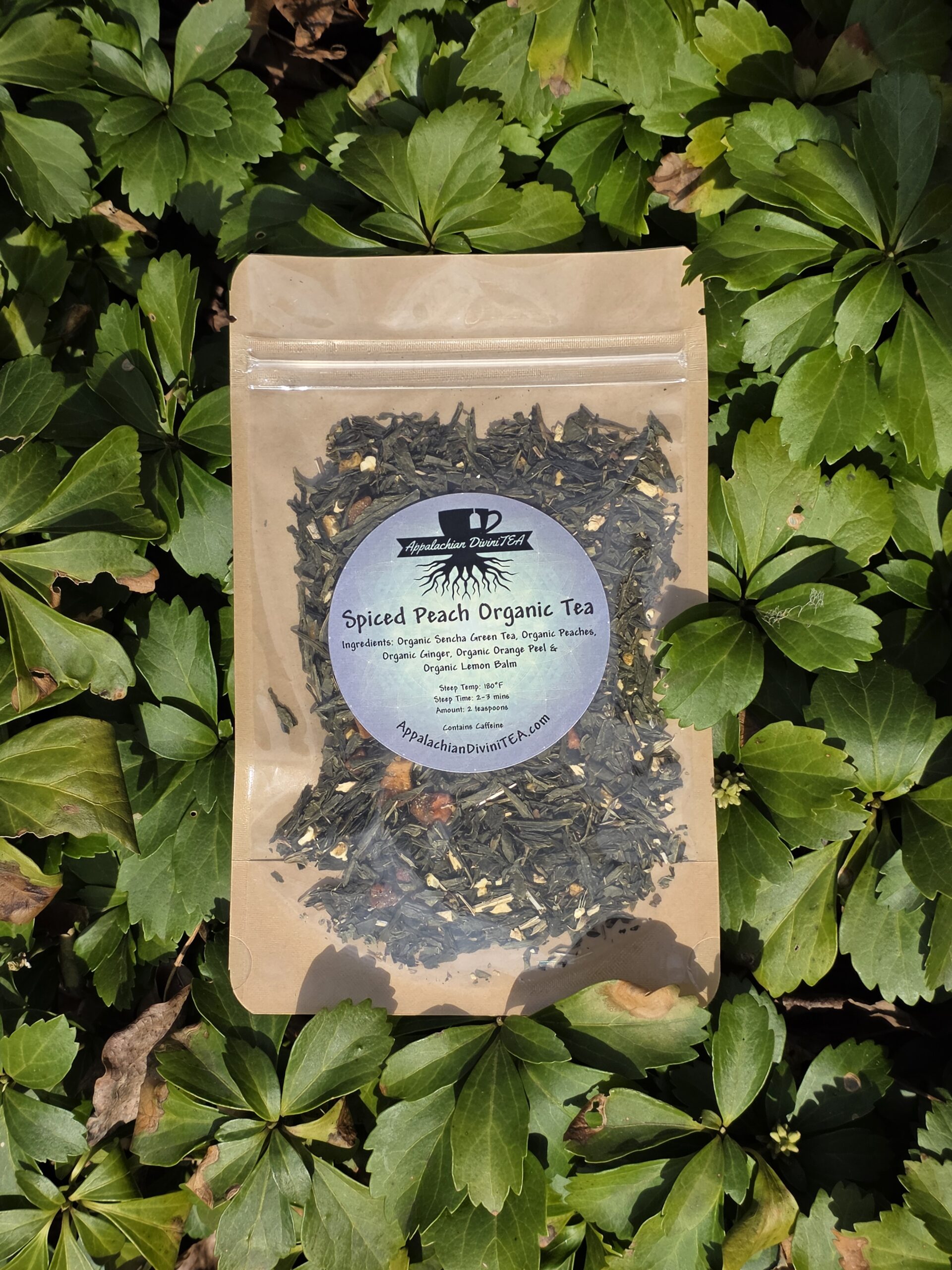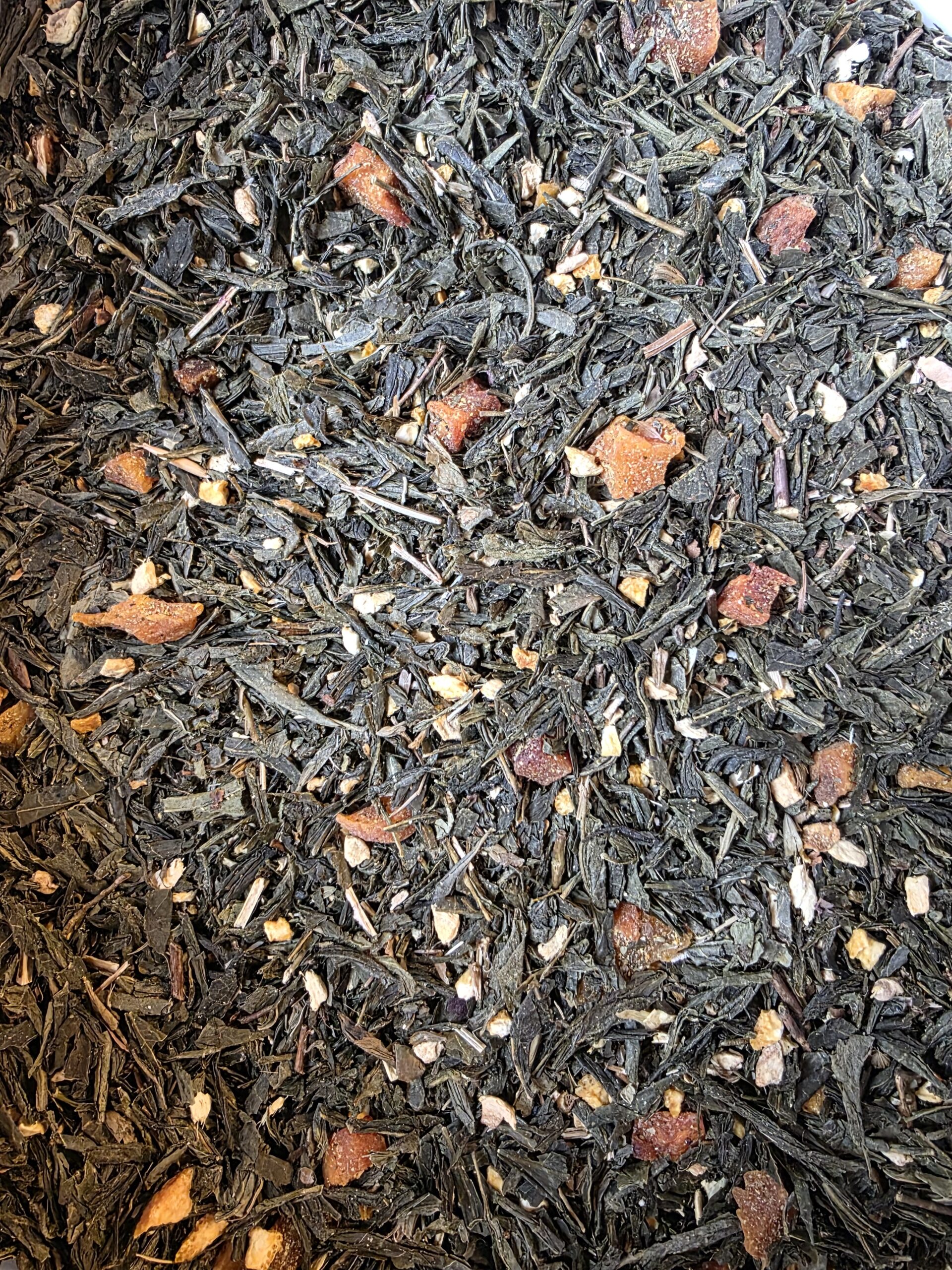 Ingredients: Organic Sencha Green Tea, Organic Peach, Organic Ginger Root, Organic Orange Peel, & Organic Lemon Balm